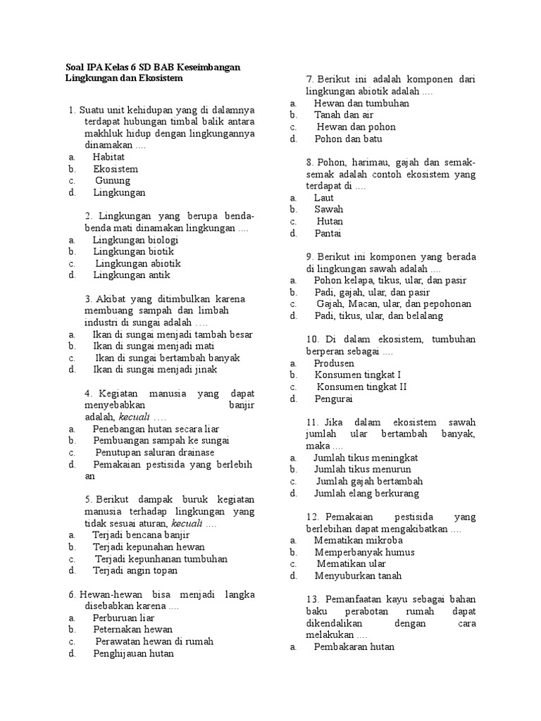 Soal Ujian Ipa Kelas 6 - Guru Ilmu Sosial