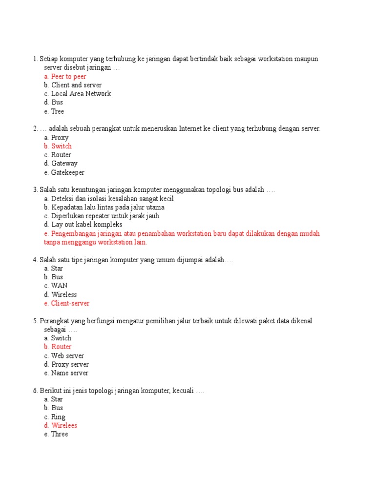 Soal Latihan Jaringan Dasar Komputer Beserta Jawabannya