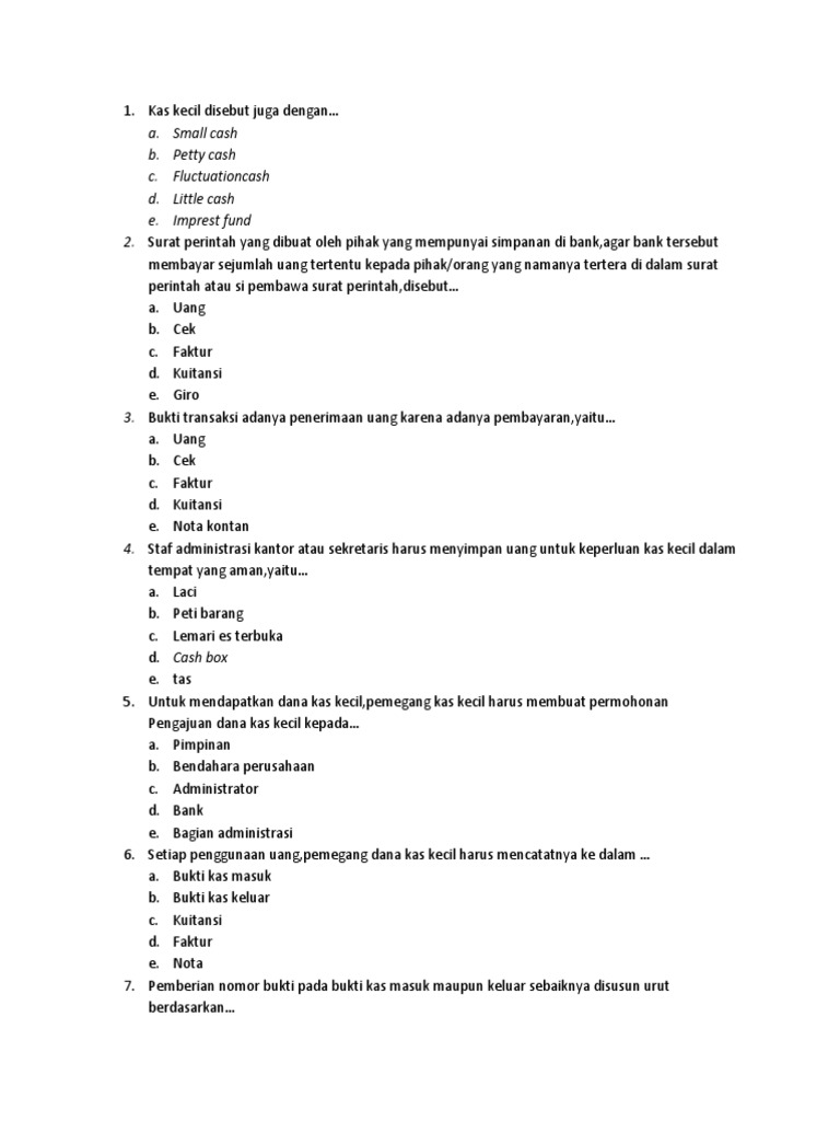 Contoh Soal Pilihan Ganda Kas Kecil Dan Jawabannya - Bagikan Contoh