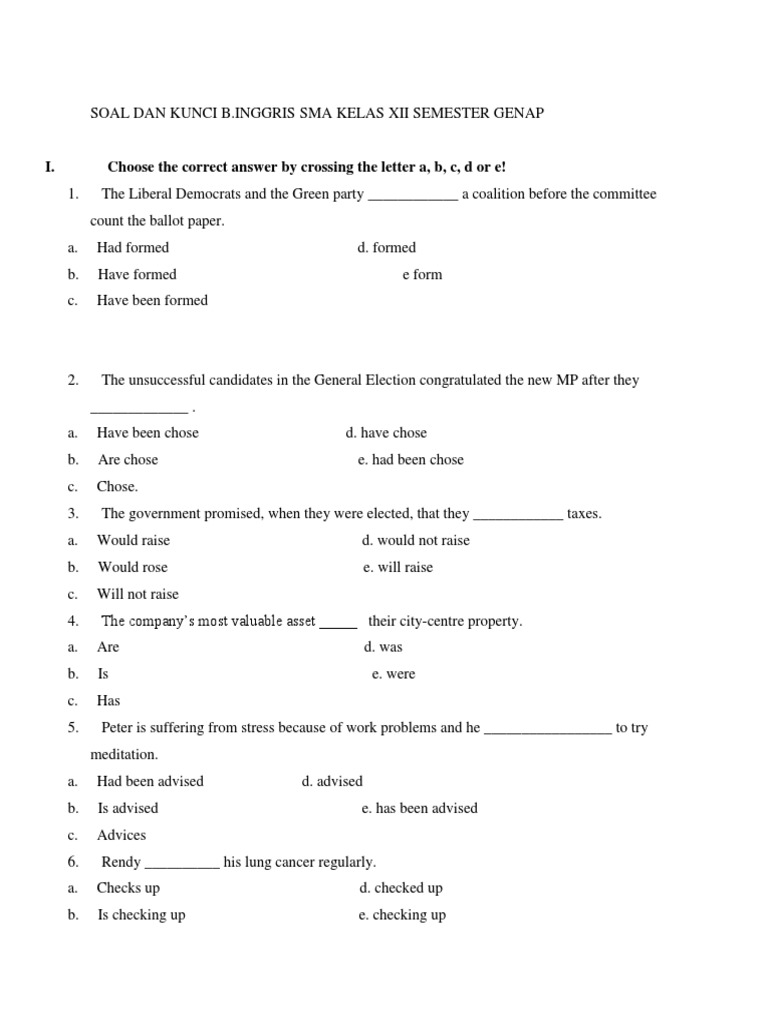 DOC) Latihan Soal Bahasa Inggris Kelas XII SMK Disertai Kunci …