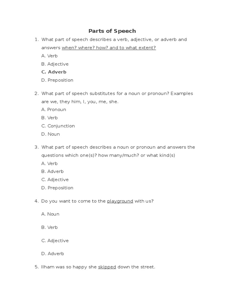 10 Pertanyaan About Parts of Speech | Part Of Speech | Adverb