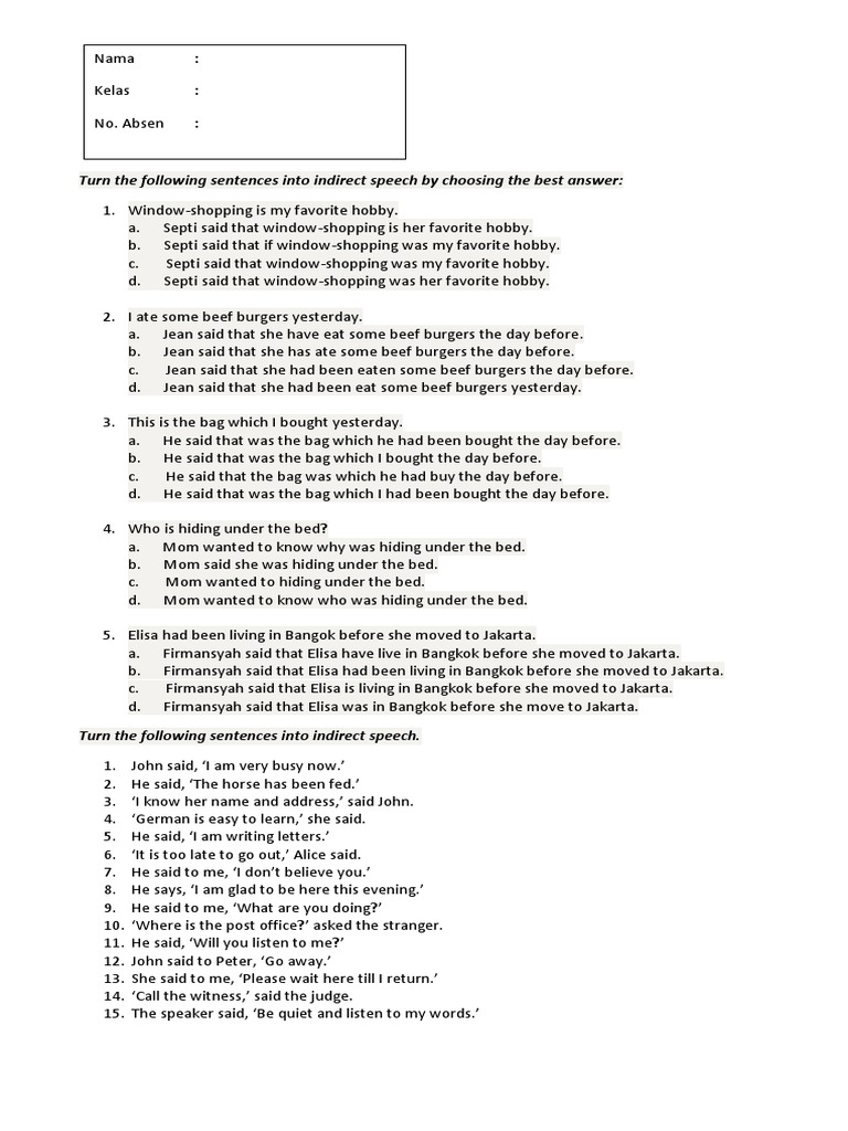 Contoh 20 Soal Direct Indirect Speech Dan Jawabannya - Guru Ilmu Sosial