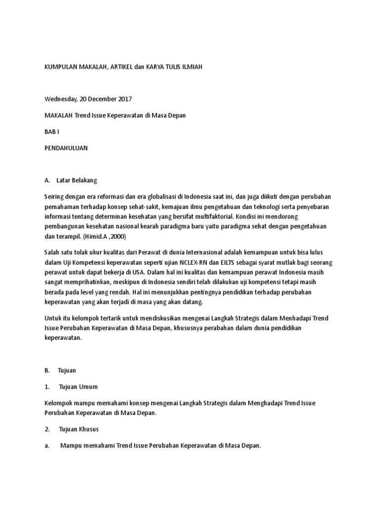 DOC) PERKEMBANGAN KEPERAWATAN PADA PENDIDIKAN KEPERAWATAN DI INDONESIA SAAT INI DAN MASA AKAN DATANG | Renisetia Gustina - Academia.edu