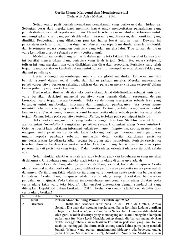 Struktur Dan Ciri Kebahasaan Teks Cerita Ulang