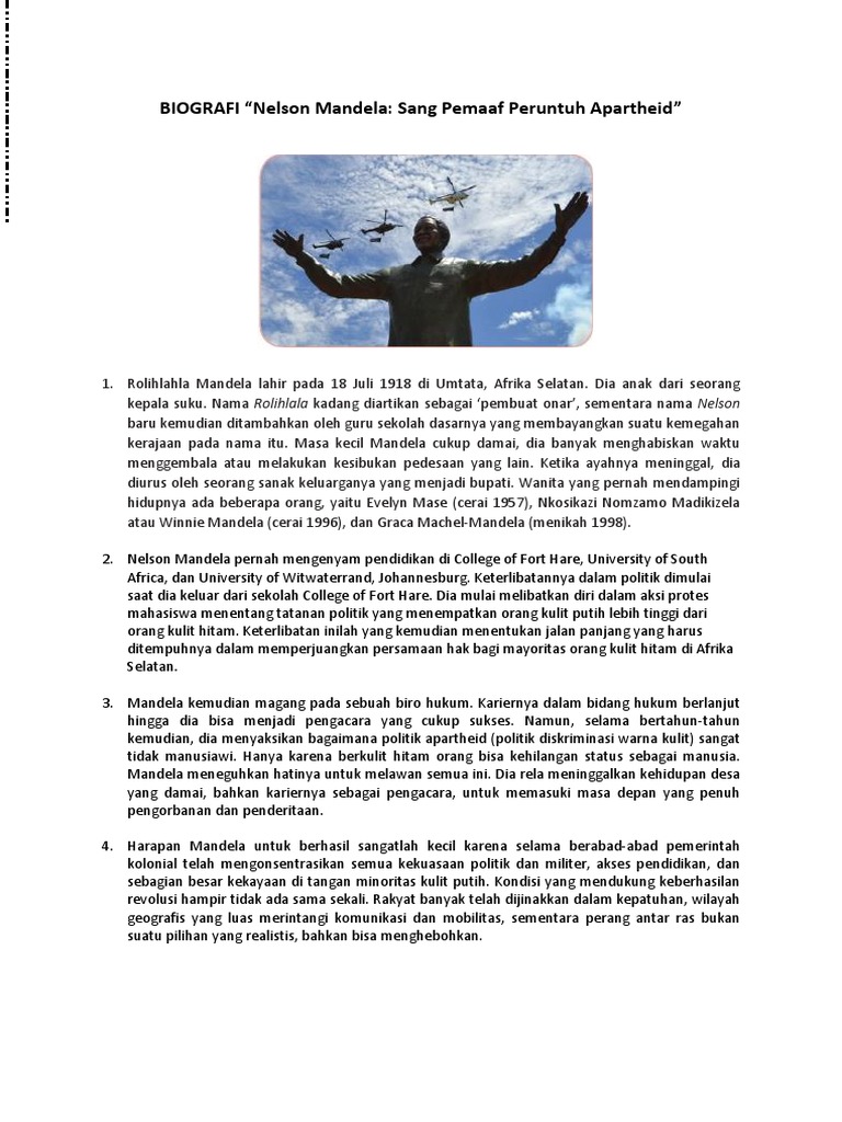 Teks Cerita Ulang Biografi Nelson Mandela Sang Pemaaf Peruntuh Apartheid - Berbagai Teks Penting