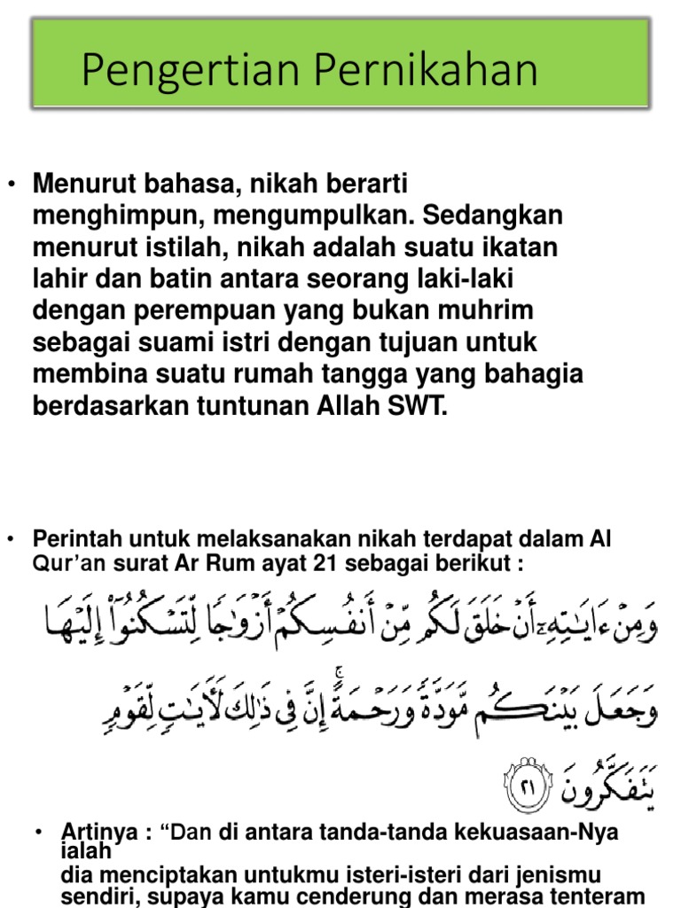 Pengertian Pernikahan: Menurut bahasa, nikah berarti