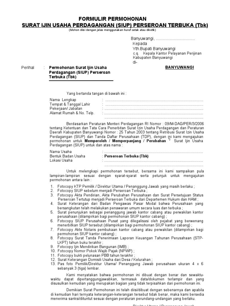 Form Surat Permohonan Surat Izin Usaha Perdagangan - Kumpulan Contoh Surat