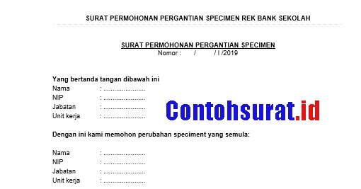 Surat Permohonan Perubahan Specimen Rekening Bank