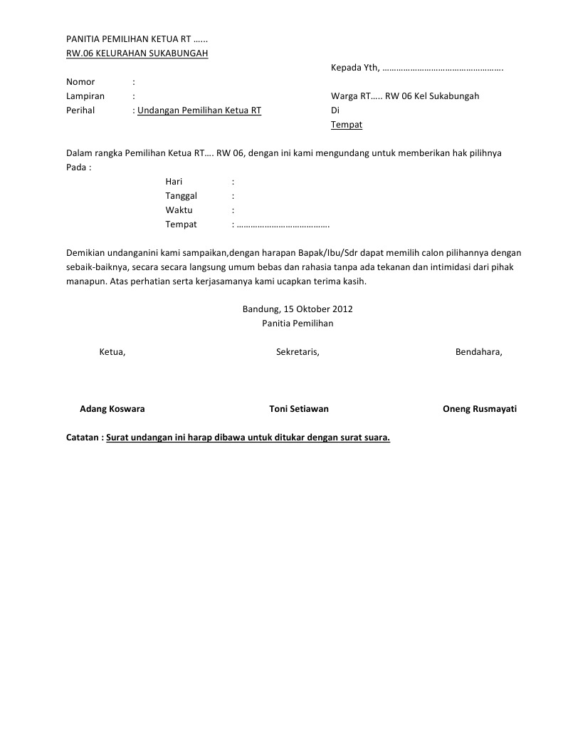 Contoh Surat Undangan Pemilihan Rt Surat Box - Cute766