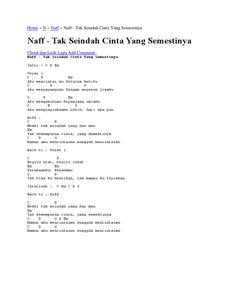 Chord Tak Seindah Cinta Yang Semestinya By Naff | Chordlicious