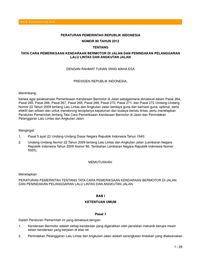 PP_NO_80_2012 Tata cara pemeriksaan kendaraan bermotor