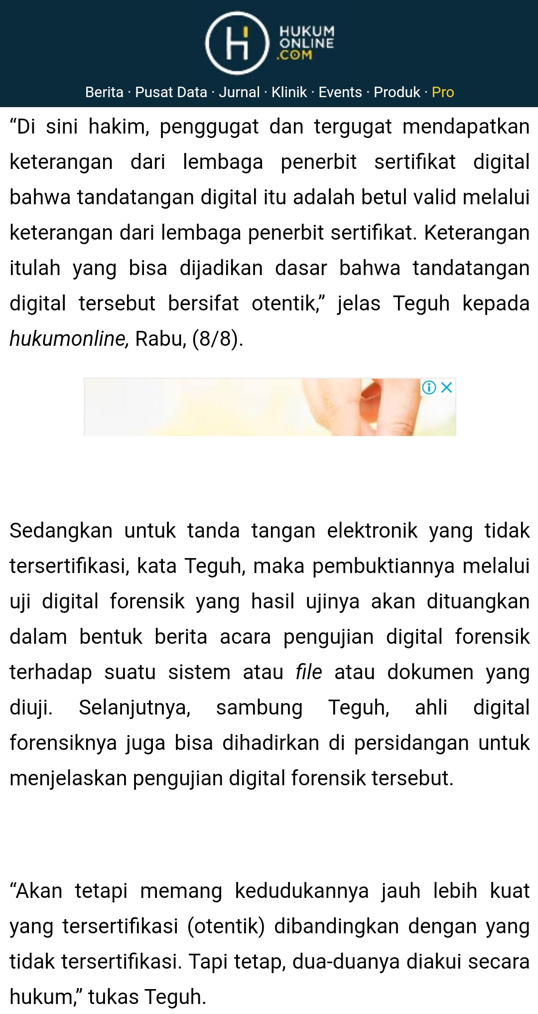 Tanda Tangan Elektronik: Keabsahan dan Pembuktiannya di Hadapan Pengadilan - hukumonline.com