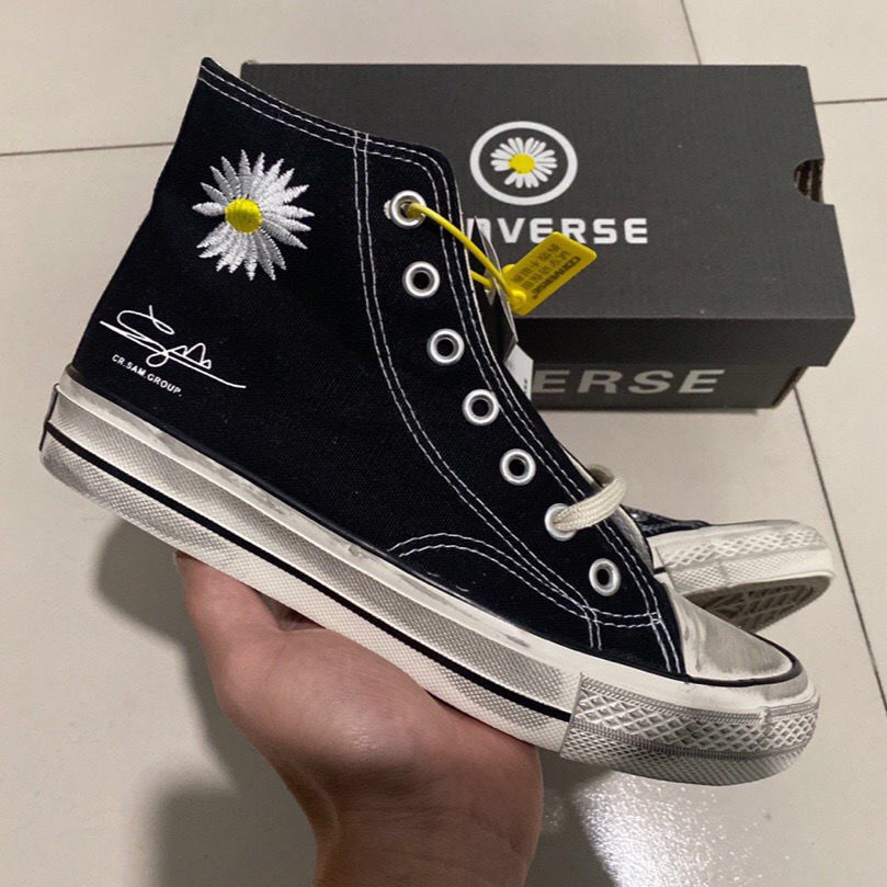 100% asli) Converse 1970 Quan Zhilong co-merek kecil daisy bordir sepatu kanvas, Tanda tangan pria dan wanita sepatu kasual tinggi untuk membantu tempat pengiriman dua hari | Shopee Indonesia