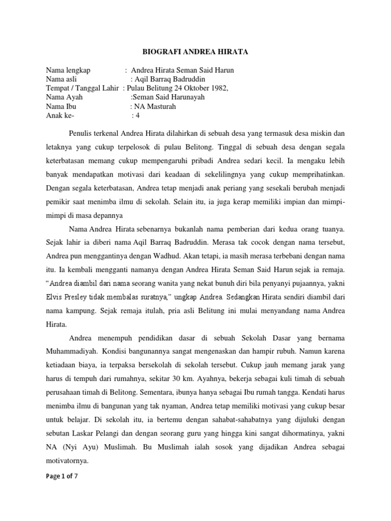 DOC) BIOGRAFI ANDREA HIRATA | Its Thumbellina - Academia.edu