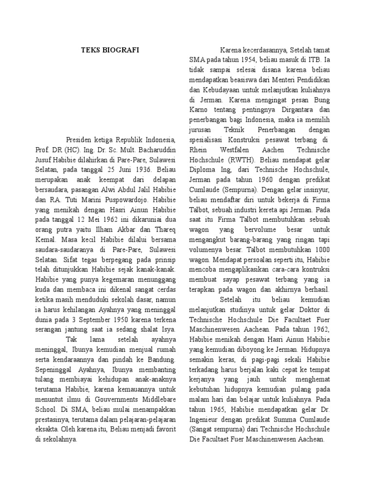 ada yang sudah mengerjakan? mengenai teks biografi bj habibie kelas 10? - Brainly.co.id