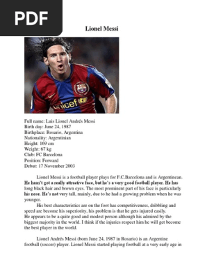Instructions: Read the text of Lionel Messi’s biography below and do the exercises below | Lionel Messi | Sports