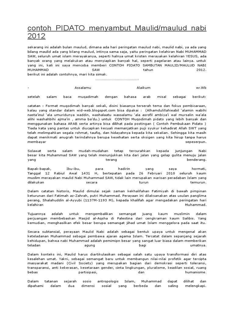 Teks Pidato Bahasa Arab Tentang Maulid Nabi Saw