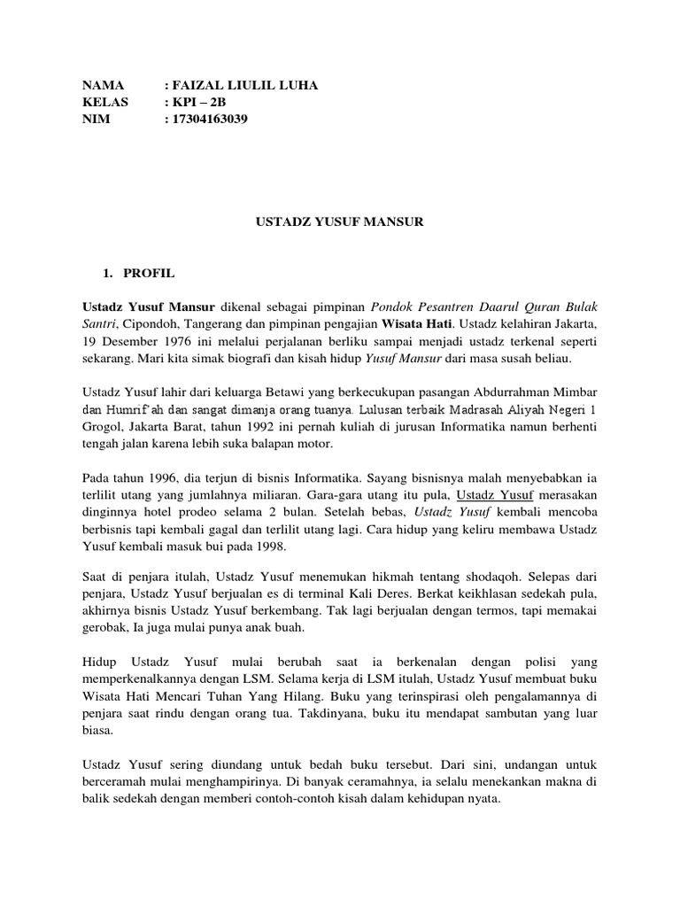 Biografi Yusuf Mansur - Biografi Tokoh