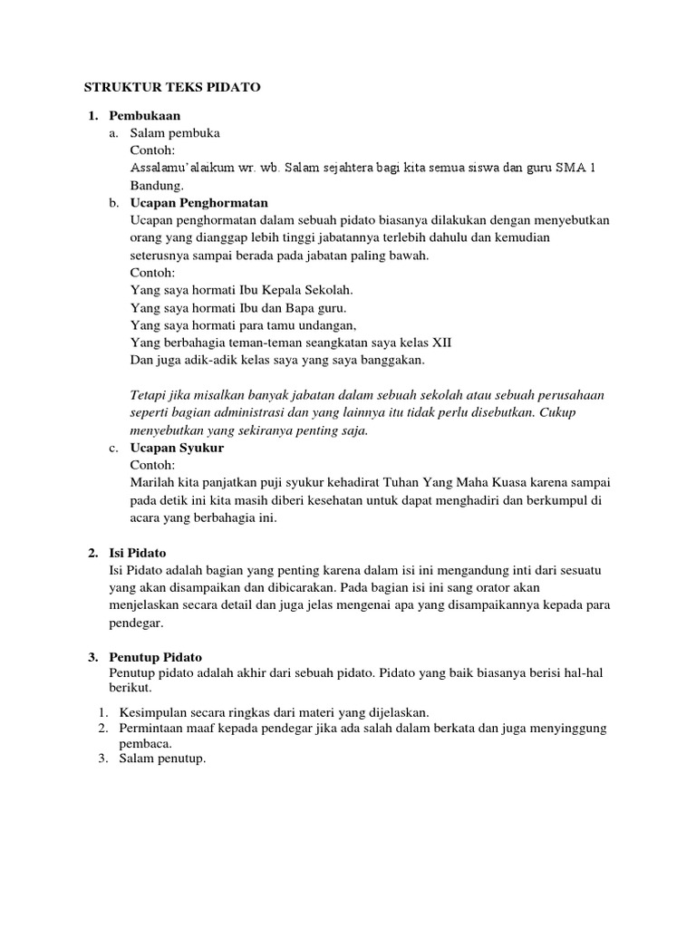 contoh teks pidato beserta strukturnya - Brainly.co.id