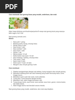 Prosedur Teks Cara Membuat Nasi Goreng Bahasa Indonesia - Berbagai Teks Penting