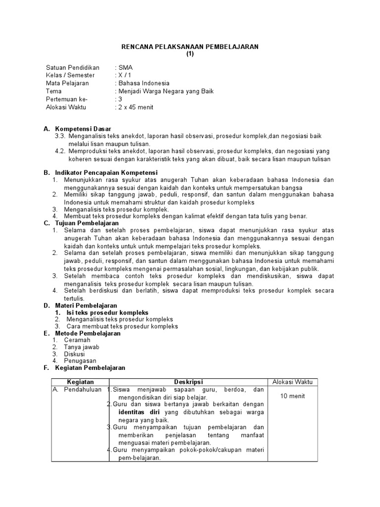 RPP B. Indo Kelas 11 Rev 2018 3.1 Dan 4.1 Teks Prosedur