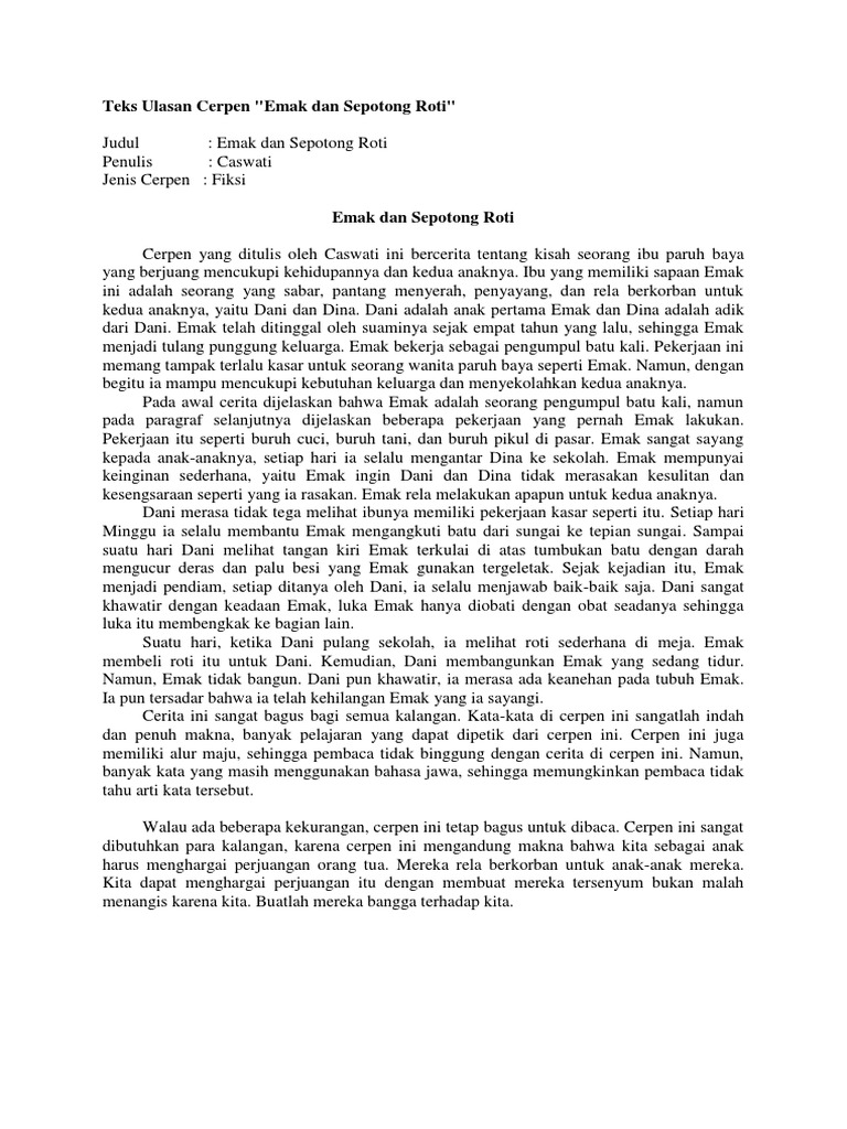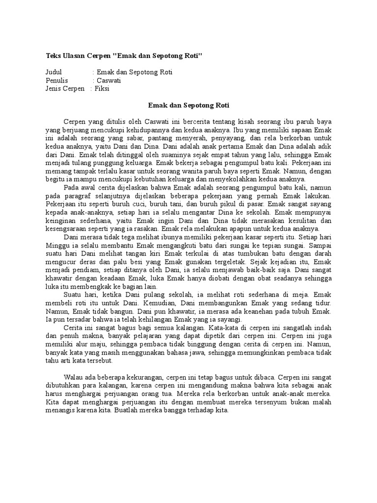 DOC) Teks Ulasan Cerpen Beserta Ulasannya | Resty Nozawa - Academia.edu