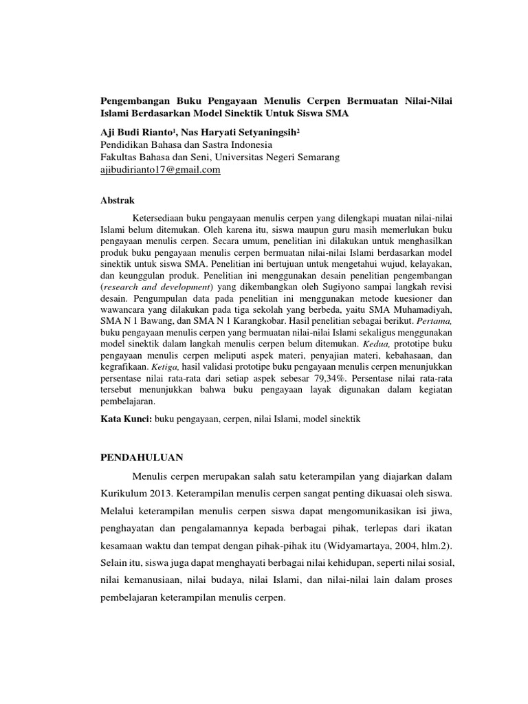 Artikel Pengembangan Buku Pengayaan Menulis Cerpen