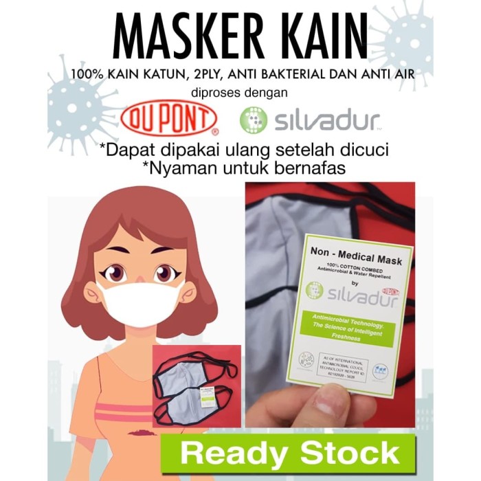 Jual Masker Kain Non Medical Anti Bakteri Silvadur ( Harga per 2pcs ) - Kota Denpasar - KeilineStore | Tokopedia