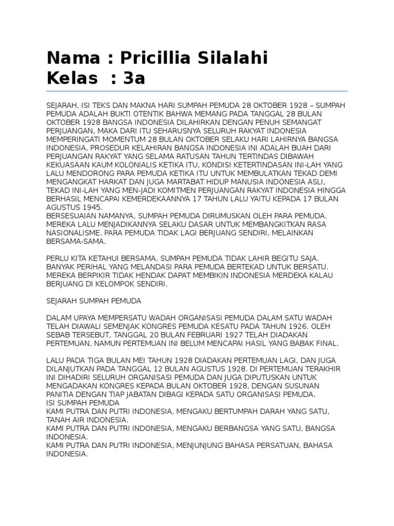 DOC) Makalah Sejarah Sumpah Pemuda dan Jati Diri Keindonesiaan | Rauda Nevilia - Academia.edu