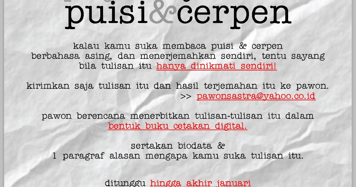 Proyek Terjemahan Puisi & Cerpen | Buletin Sastra Pawon