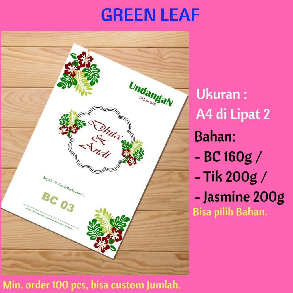 100 pcs) CETAK UNDANGAN PERNIKAHAN MURAH SIMPEL UNIK WARNA HIJAU DAUN - GREEN LEAF | Shopee Indonesia