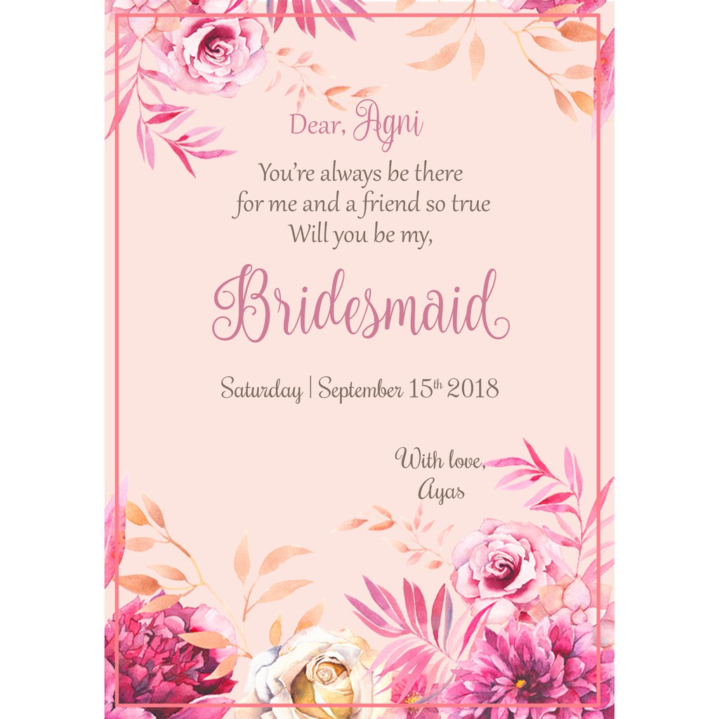 kartu bridesmaid /card bridesmaid (tulisan only-custom) | Shopee Indonesia