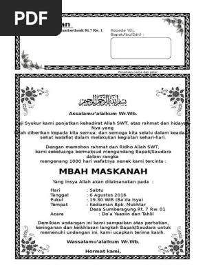 Contoh Surat Undangan Tahlil 40, 100, 1000 hari (haul).doc - PDF Free Download