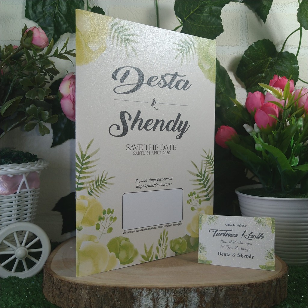 Kartu undangan pernikahan motif bunga hijau simple elegant mewah murah cepat tebal | Shopee Indonesia
