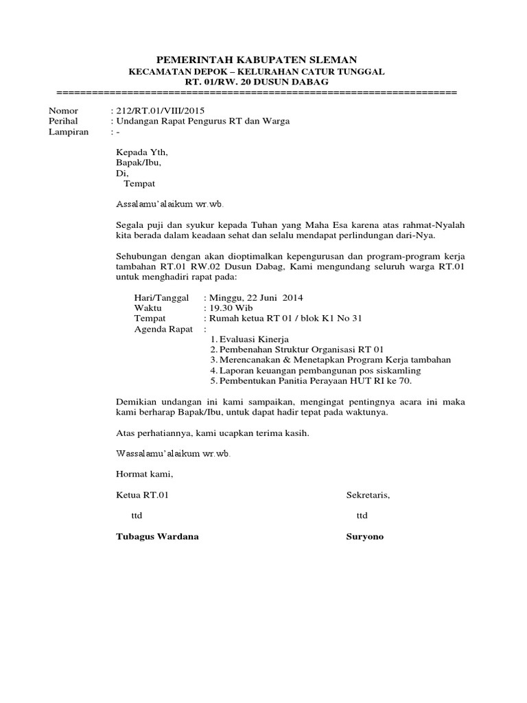 Contoh Undangan Rapat Hut Ri - Nusagates