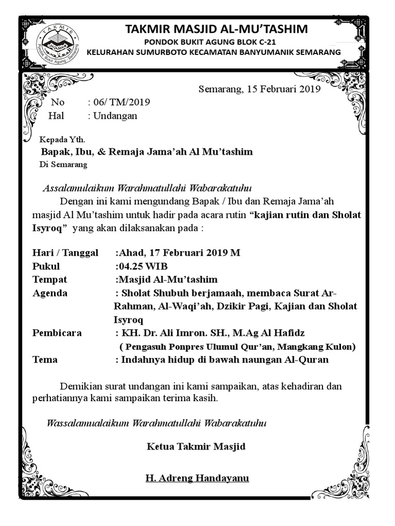 Contoh Surat Undangan Pengajian Rutin | Belajar Office