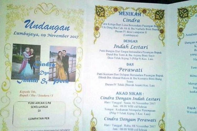 Undangan Nikah dengan 2 Wanita Sekaligus itu Ternyata Bukan Hoax, Ini Keterangan Pihak Keluarga - Semua Halaman - Grid
