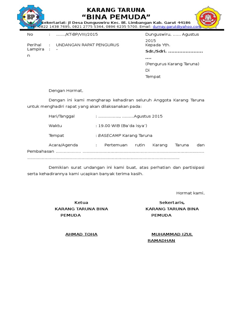Contoh Surat Undangan Rapat Karang Taruna + .doc File - Nyantaidulu