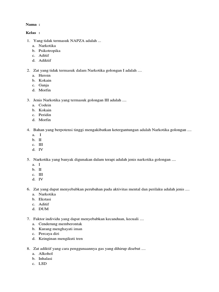 20+ Soal Zat Adiktif dan Psikotropika Pilihan Ganda [+Kunci Jawaban]