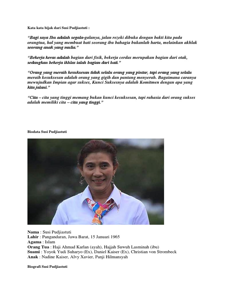 Biografi dan Profil Lengkap Susi Pudjiastuti Menteri Kelautan dan Perikanan Indonesia Ke-6 Info Biografi
