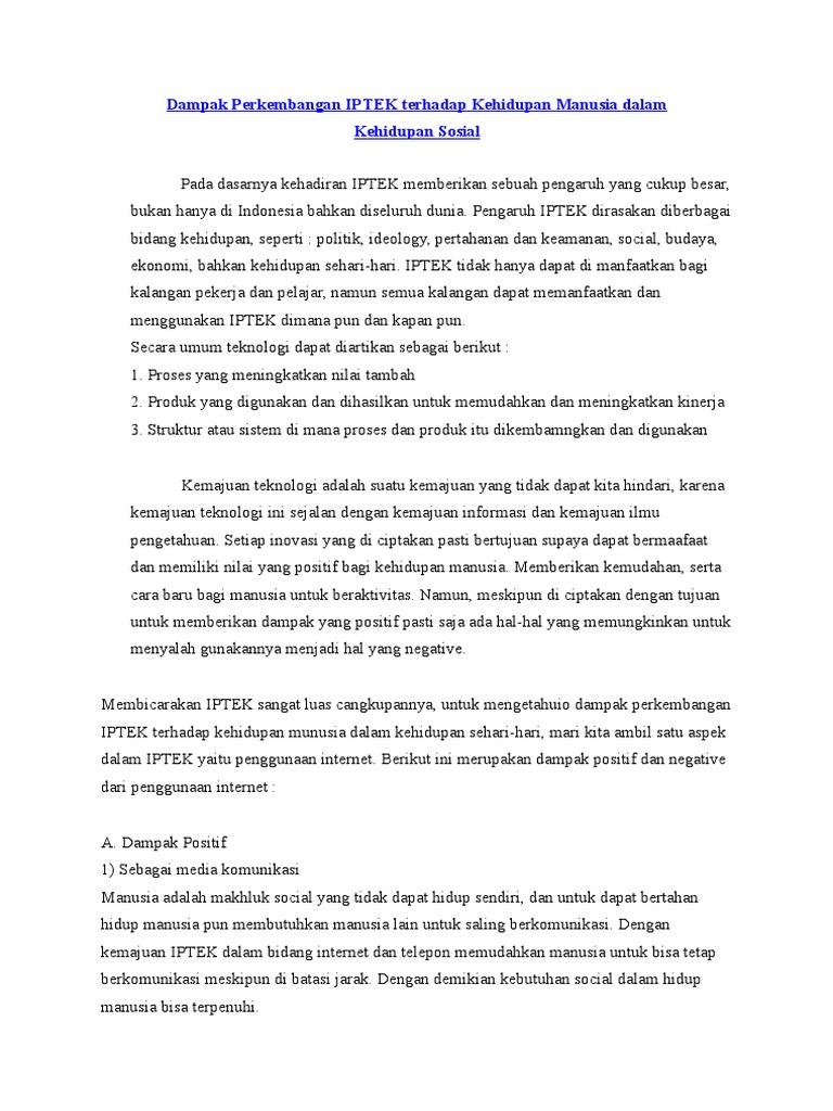 Dampak IPTEK Terhadap kehidupan Sosial - [PDF Document]