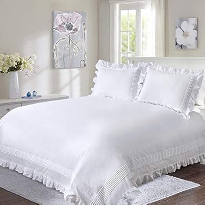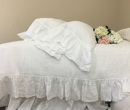 Amazon.com: White Duvet Cover with Mermaid Long Ruffles, Linen …