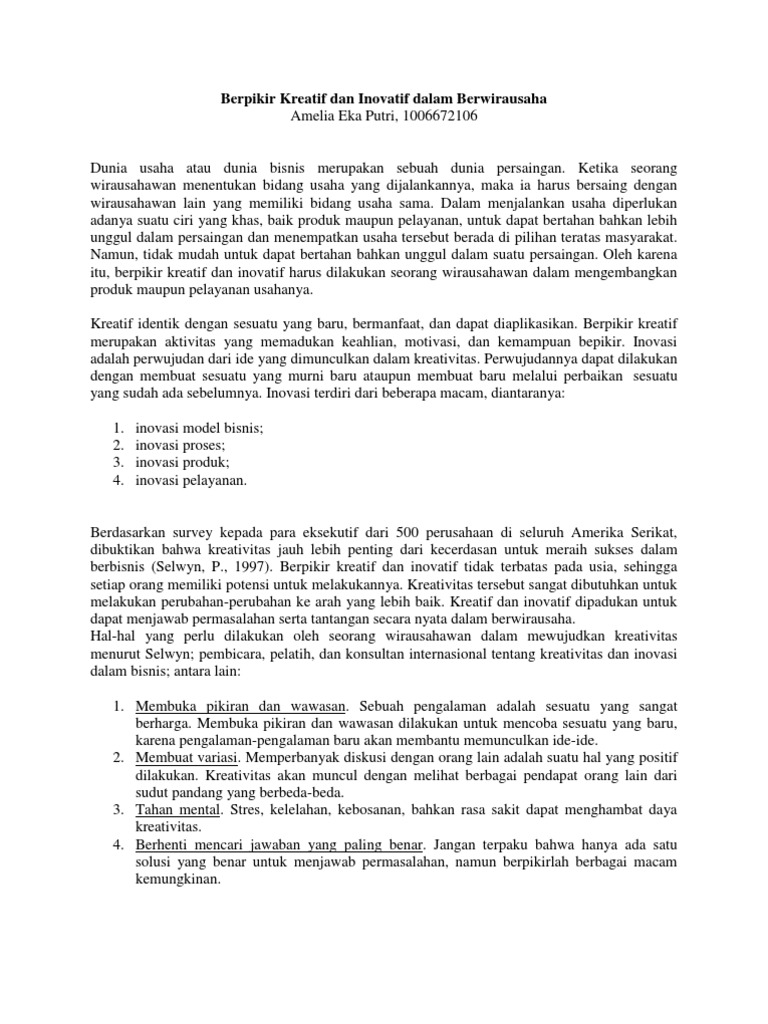 Berpikir Kreatif Dan Inovatif Dalam Berwirausaha