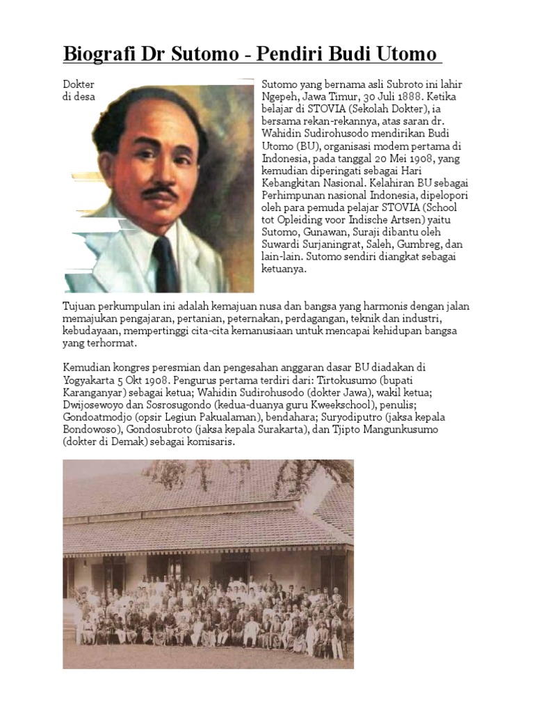 Biografi Dr Sutomo Pendiri Budi Utomo - PDF Free Download