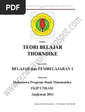 DOC) Makalah: TEORI BELAJAR THORNDIKE | Nizwa Ayuni - Academia.edu