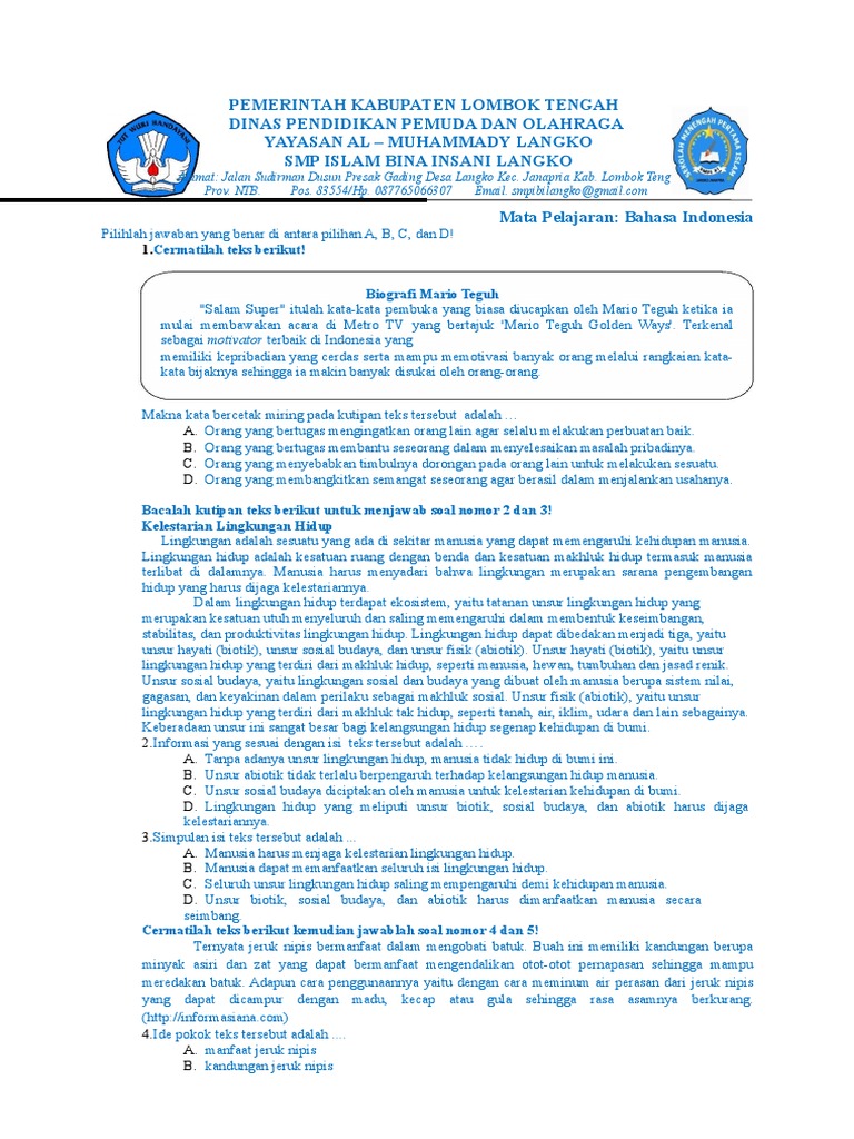 Latihan Soal p1 Usbn-un b.indo Smp-mts