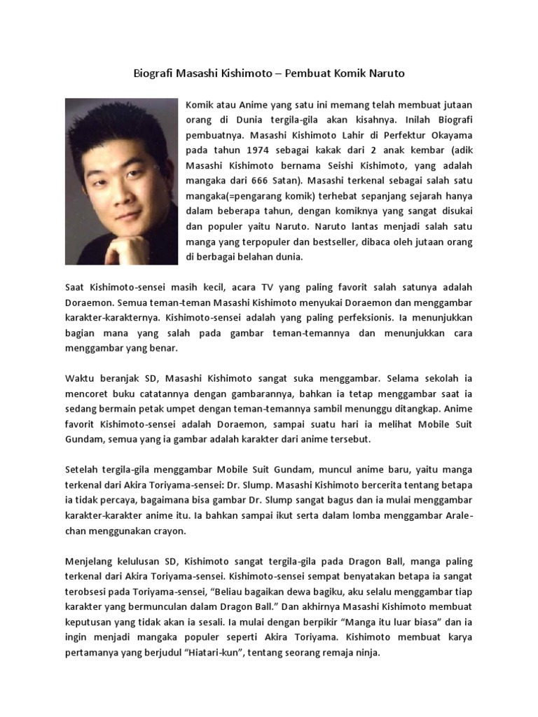 Academy Of Naruto Shippuden Indonesia II - Biografi masashi kishimoto post by : <3 Hime <3 => like sebelum baca , hargai usaha admin <= Mungkin bagi sebagian orang nama Masashi Kishimoto