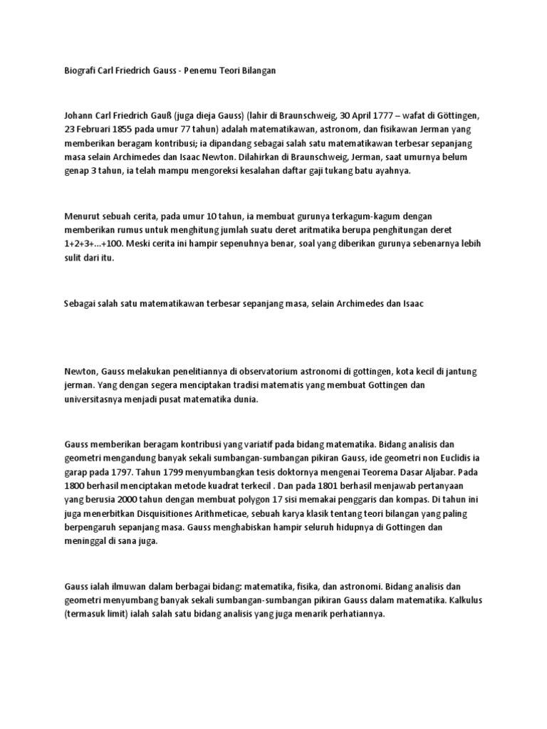 Biografi Carl Friedrich Gauss - Sang Matematikawan Si Penemu Teori Bilangan | Biografiku.com