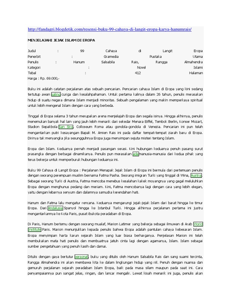 Resensi Novel Islami 99 Cahaya Islam Di Langit Eropa