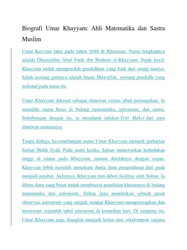 Makalah Biografi Umar Khayyam